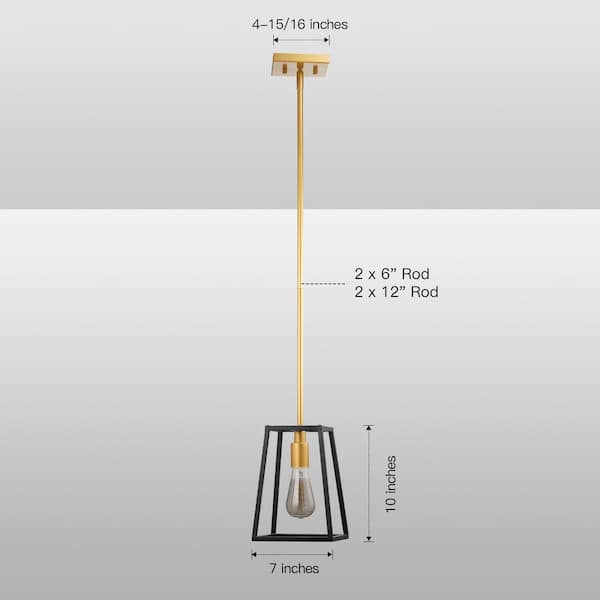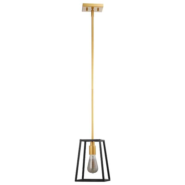 1-Light Matte Black and Gold Finish Modern Farmhouse Cage Pendant Light