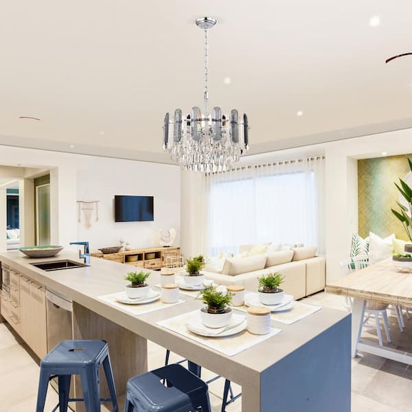 19.5 in. 8-Light Round Chrome Tiered Rippled Glam Crystal Chandelier for Dinning Living Room with No Bulb Included