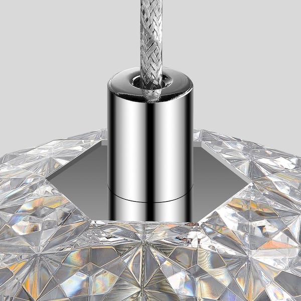 28-Watt 5-Light Chrome Finish LED Cluster Pendant Light with Crystal Orb Shade