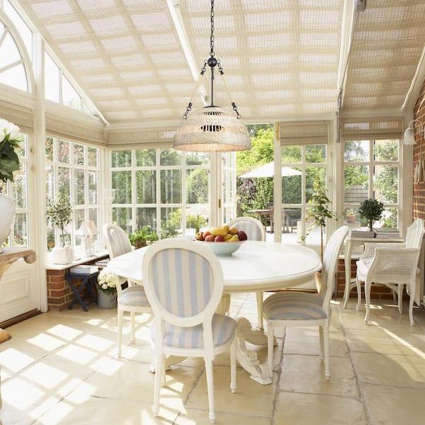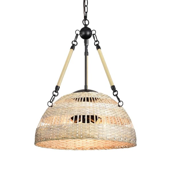 3-Light Black Steel and Antique Silver Bamboo Bowl Chandelier for Kitchen Island and Living Room with No Bulbs Included