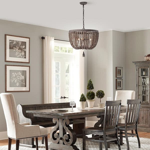 3-Light Slate Wood Beads Bowl Chandelier