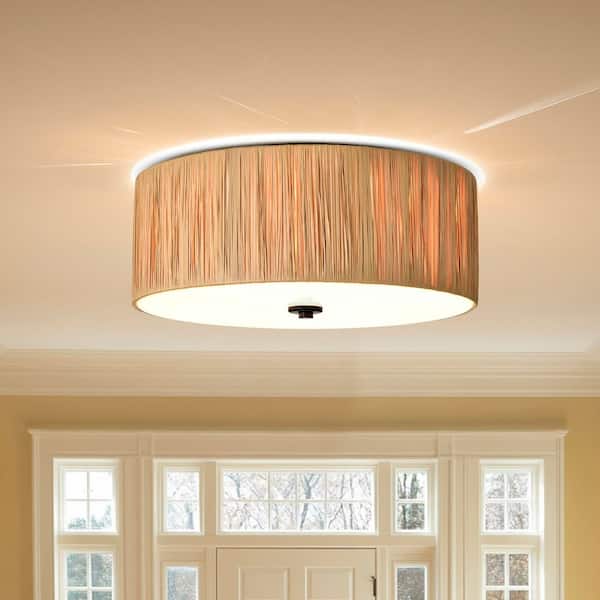 4-Light 16 in. Natural Farmhouse Flush Mount Ceiling Light with Raffia and Acrylic Shade