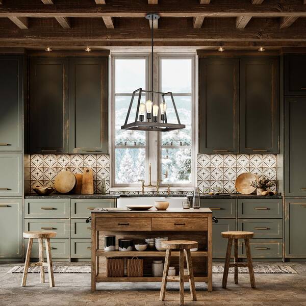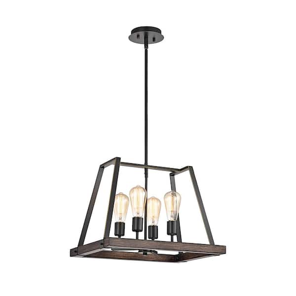 4-Light 18 in. Wood and Oil Rubbed Bronze Pendant Light Farmhouse Chandelier for Living Dining Room, No Bulbs Included