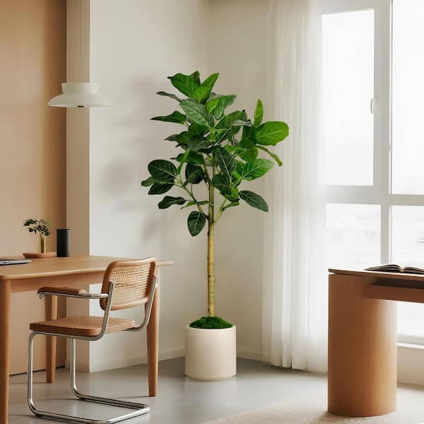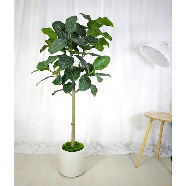 5 ft. Artificial Audrey Ficus Tree in White Decor Pot, Faux Green Plant Indoor Home Decorative Planter