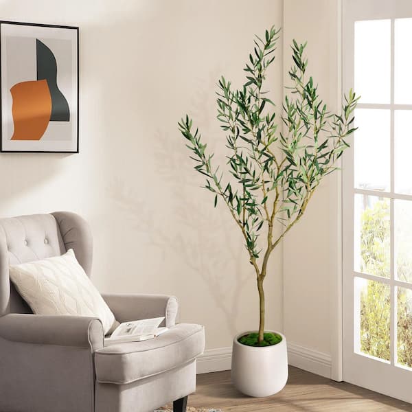 5 ft. Artificial Olive Tree in White Decor Pot, Faux Green Plant Indoor Home Decorative Planter