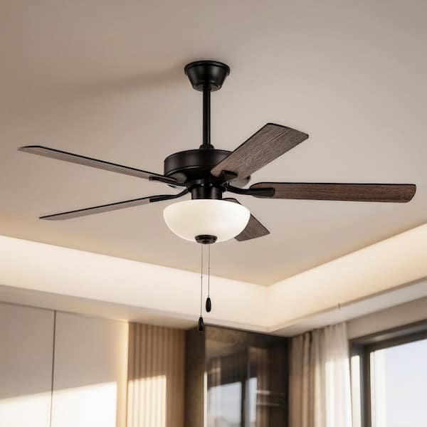 52 in. Indoor Matte Black 5-Blade Reversible Ceiling Fan with Light Kit and Pull Chain