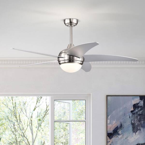 52 in. Integrated LED Indoor Brushed Nickel 5-Blade Ceiling Fan with Light Kit and Remote Control