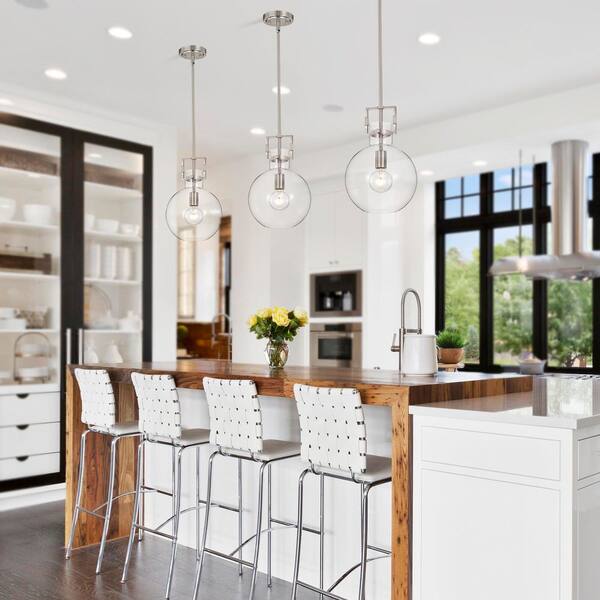 60-Watt 1-Light Brushed Nickel 10 in. Globe Shaped Clear Glass Pendant Light, Bulb Not Included