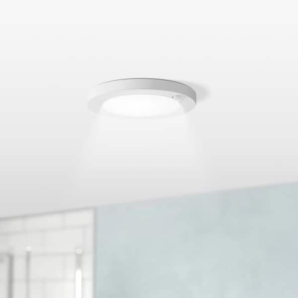 7.75 in. 15-Watt Matte White Motion Sensor Round LED Disc Downlight Integrated LED Flush Mount with White Acrylic Shade