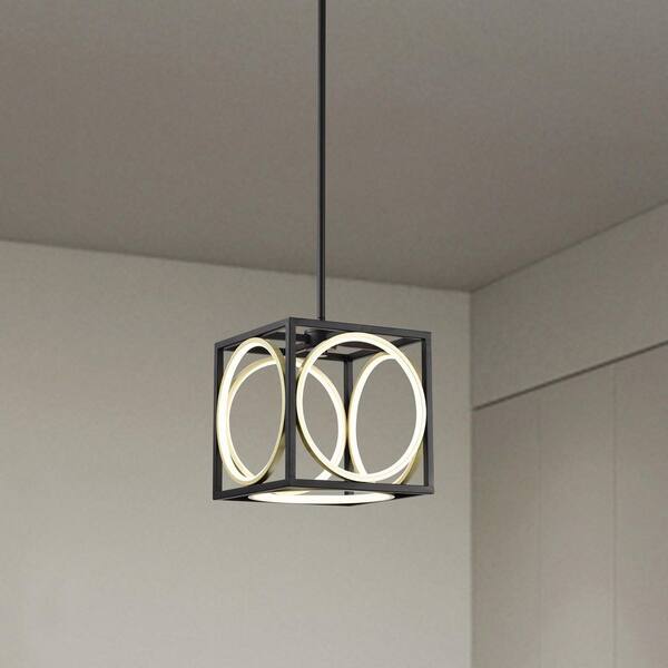 Alistair 24-Watt Integrated LED Matte Black and Gold Finish Modern Square Pendant Light