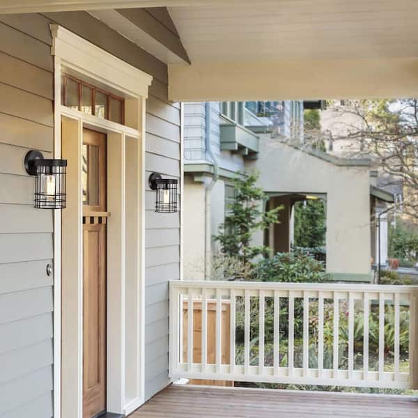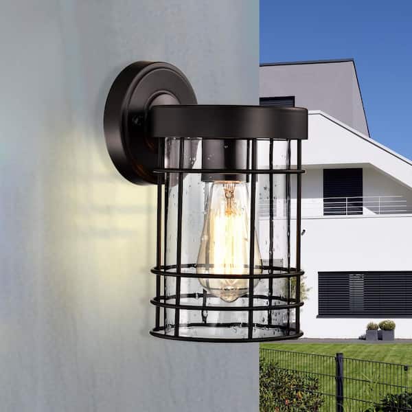 Charlton 1-Light Transitional Oil Rubbed Bronze Cage Outdoor Wall Lantern Sconce with Seedy Glass