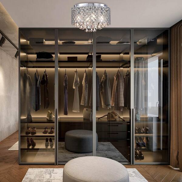 Clara 4-Lights Chrome Glam Flush Mount with Lattice Drum Shade and Clear Glass Hanging Crystals