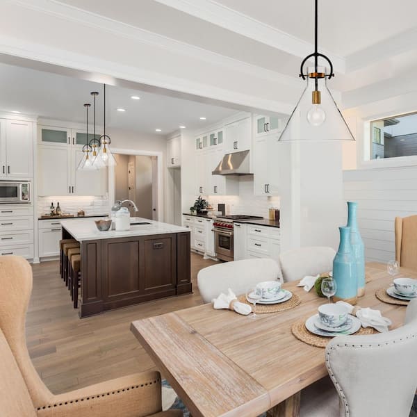 • Larger-size pendant light works well alone or in pairs