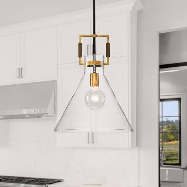 Essence 1-Light Contemporary Oil Rubbed Bronze and Antique Gold Pendant with Clear Cone Glass Shade