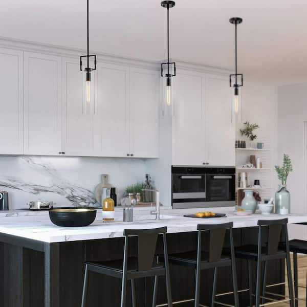Essence 1-Light Matte Black Modern Mini Pendant Light with Clear Cylindrical Glass Shade (3-Pack)