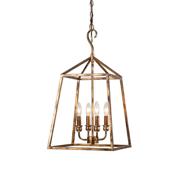 Lauren Traditional 14 in. 4-Light Antique Gold Farmhouse Cage Pendant
