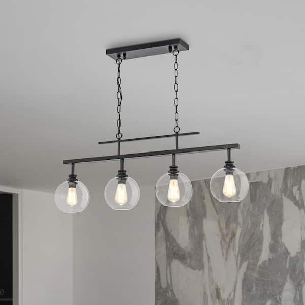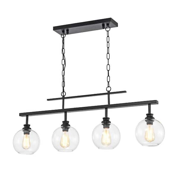 Walden 4-Light Antique Black Industrial Linear Hanging Chandelier for Kitchen with Clear Glass Shades