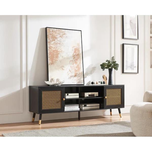 Black 66 in. TV Stand Fits TVs up to 70 in. Media Console Entertainment Center