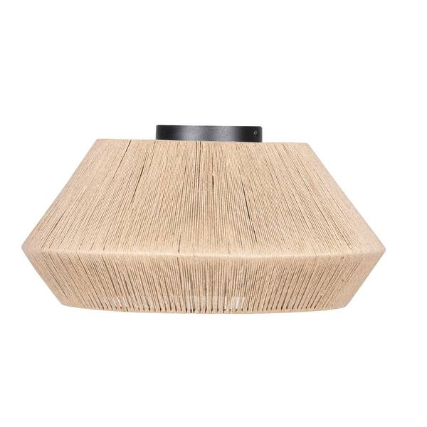 Alderney 19 in. W 1-Light Black Convertible Bowl Pendant Light or Ceiling Light with Brown Textile Thread Shade