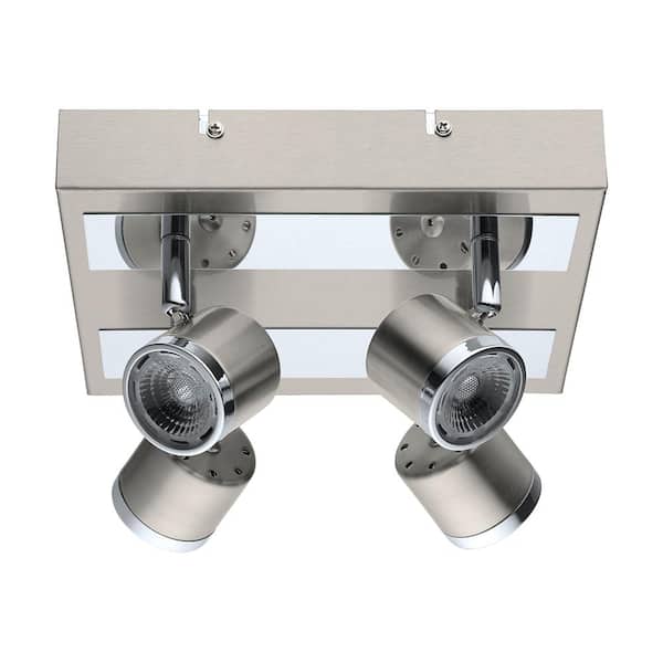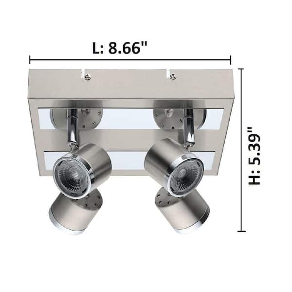 Pierino 8.66 in W. Satin Nickel and Chrome Integrated LED Ceiling Flush Mount with Adjustable Heads