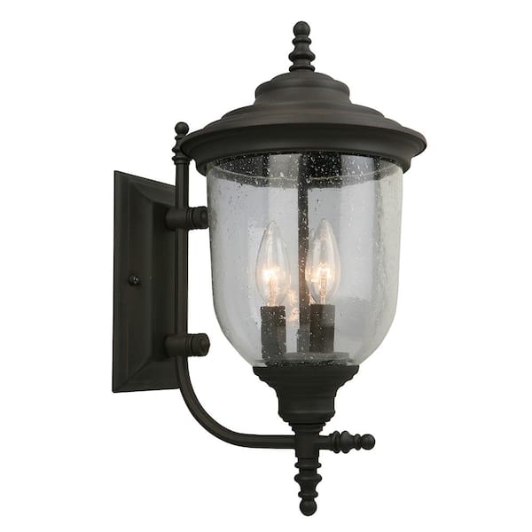 Pinedale 11 in. W x 17.52 in. H 3-Light Matte Bronze Outdoor Wall Lantern Sconce with Clear Seedy Glass Shade