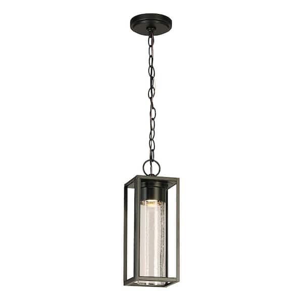 Walker Hill 5.39 in. W x 14.61 in. H 1-Light Matte Black LED Outdoor Pendant Light with Clear Seedy Glass Shade