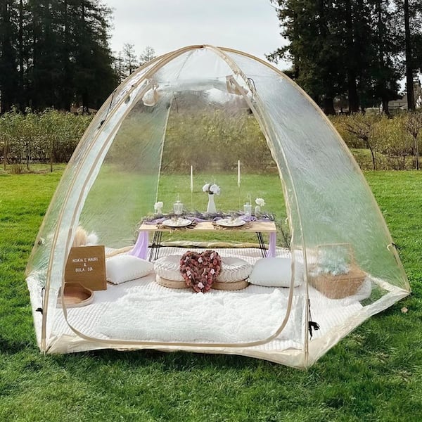 10 ft. x 10 ft. Beige Instant Pop Up Bubble Tent Screen House, Weatherproof Cold Protection 360 View Camping Tent