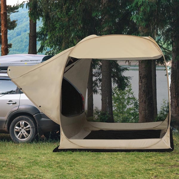 84 in. x 84 in. x 86 in. Beige Instant Pop Up Truck Tent, Mesh Walls, Camping Outdoor Travel Screen House Attachment