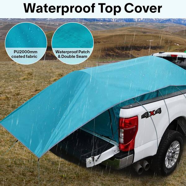Blue Pop Up Automatic Setup Truck Bed Tent, Weatherproof, PU2000mm Double Layer Rainfly Adjustable 5,5.5,6, 6.5,8 ft.