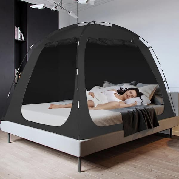 Grey Indoor Pop Up Portable Blackout Bed Canopy Tent, Twin, Curtains, Breathable, Reducing Light (Mattress Not Included)