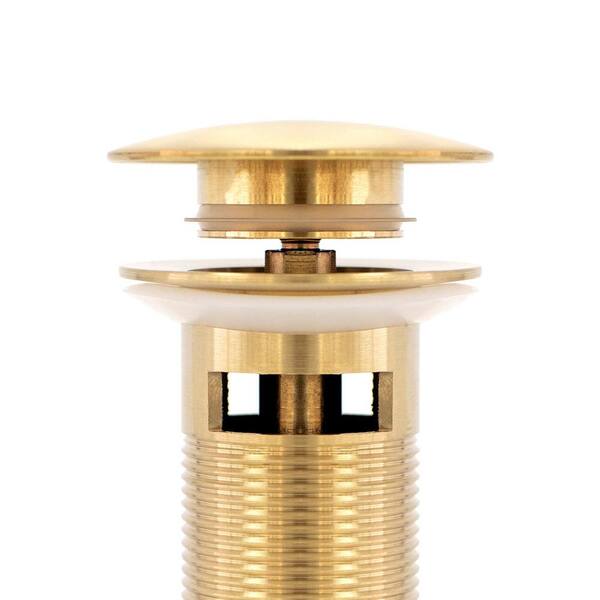 Pop-Up Drain Assembly with Cap with Overflow for Undermount Installation in Brushed Gold