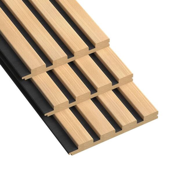 104 in. x 5.9 in. x 0.7 in. Solid Wood Wall 4-Grid Cladding Siding Board in White Maple Color (Set of 3-Piece)