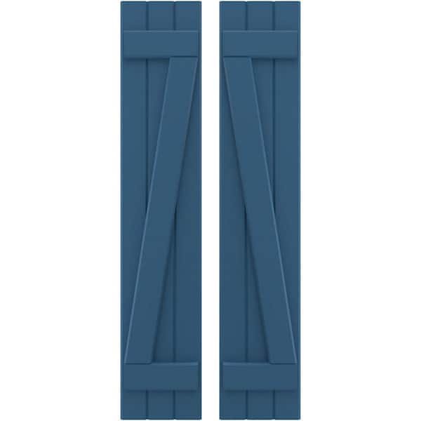 10-1/2 in. W x 38 in. H Americraft 3-Board Exterior Real Wood Joined Board and Batten Shutters w/Z-Bar in Sojourn Blue
