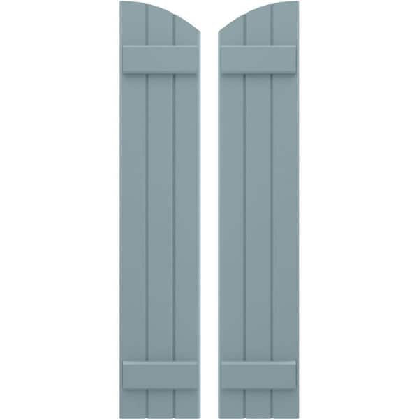 10-1/2 in. W x 52 in. H Americraft Exterior Real Wood Joined Board and Batten Shutters Elliptical Top Peaceful Blue