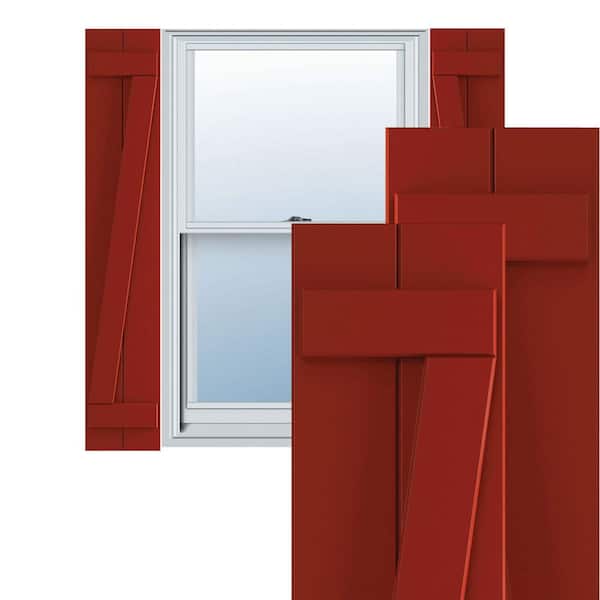 10-3/4 in. x 35 in. True Fit PVC 2-Board Joined Board and Batten Shutters with Z-Bar Pair in Fire Red