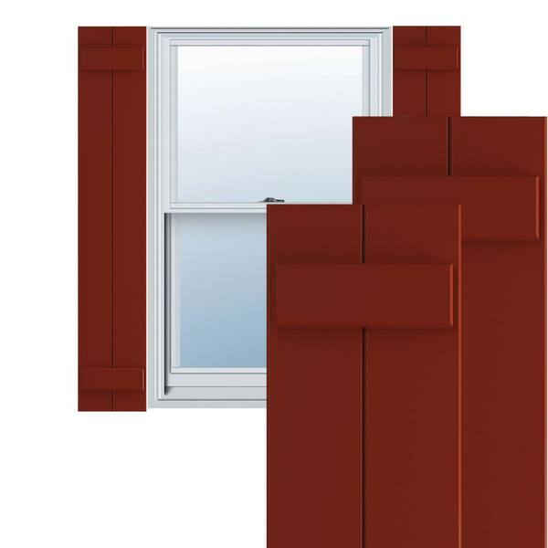 10 3/4" x 35" True Fit PVC Two Board Joined Board-n-Batten Shutters, Pepper Red (Per Pair)