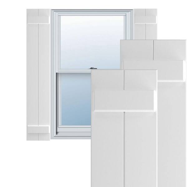 10 3/4" x 74" True Fit PVC Two Board Joined Board-n-Batten Shutters, White (Per Pair)