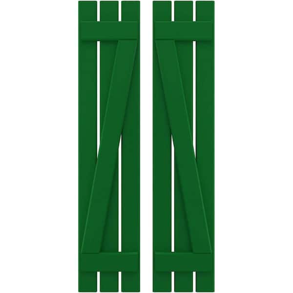 11-1/2 in. W x 80 in. H Americraft 3 Board Exterior Real Wood Spaced Board and Batten Shutters with Z-Bar Viridian Green