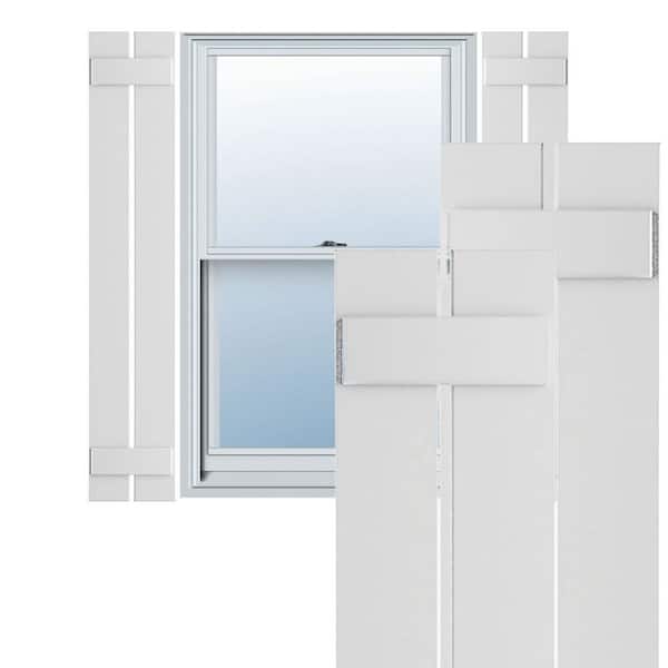 11-1/4 in. x 31 in. True Fit PVC 2 Board Spaced Board and Batten Shutters Pair in White