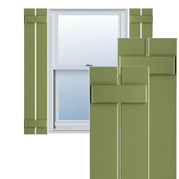 11-1/4 in. x 32 in. True Fit PVC 2 Board Spaced Board and Batten Shutters Pair in Moss Green