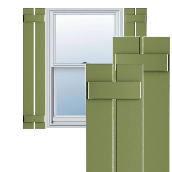 11-1/4 in. x 35 in. True Fit PVC 2 Board Spaced Board and Batten Shutters Pair in Moss Green