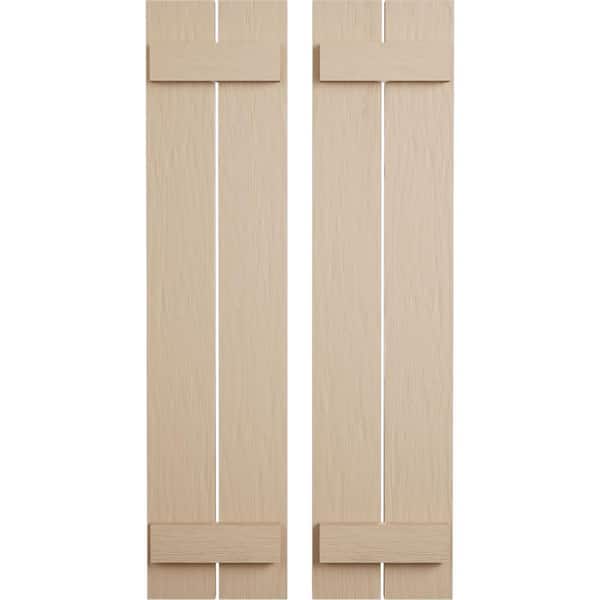 11.5 in. x 32 in. Timberthane Polyurethane 2-Board Spaced Board-n-Batten Rough Sawn Faux Wood Shutters Pair