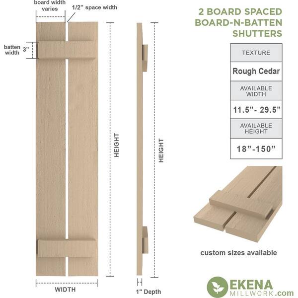 11.5 in. x 52 in. Timberthane Polyurethane 2-Board Spaced Board-n-Batten Rough Cedar Faux Wood Shutters Pair