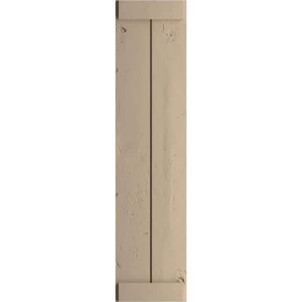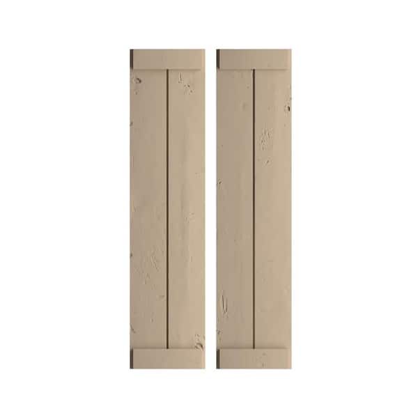 11 in. x 32 in. Timberthane Polyurethane 2-Board Joined Board-n-Batten Knotty Pine Faux Wood Shutters, End Batten Pair
