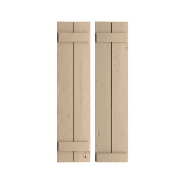11 in. x 32 in. Timberthane Polyurethane 2-Board Joined Board-n-Batten Knotty Pine Faux Wood Shutters Pair