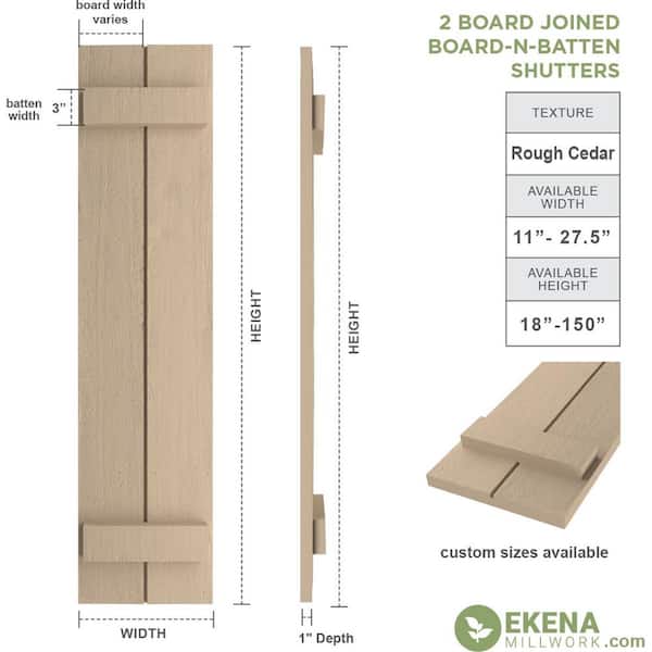 11 in. x 46 in. Timberthane Polyurethane 2-Board Joined Board-n-Batten Rough Cedar Faux Wood Shutters Pair