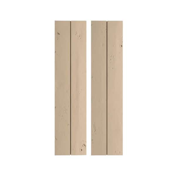 11 in. x 56 in. Timberthane Polyurethane 2-Board Joined Knotty Pine Faux Wood Board-n-Batten Shutters, No Batten Pair