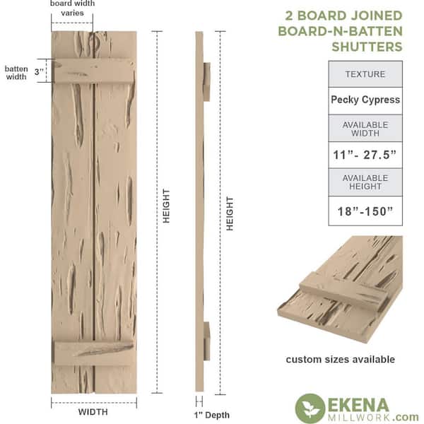 11 in. x 62 in. Timberthane Polyurethane 2-Board Joined Board-n-Batten Pecky Cypress Faux Wood Shutters Pair