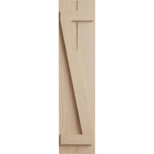 11 in. x 68 in. Timberthane Polyurethane 2-Board Joined Board-n-Batten Sandblasted Faux Wood Shutters w/Z-Board Pair