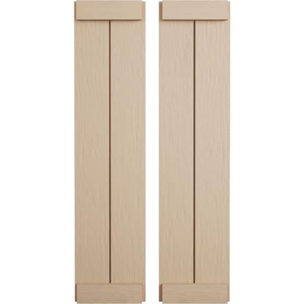 11 in. x 90 in. Timberthane Polyurethane 2-Board Joined Board-n-Batten Rough Sawn Faux Wood Shutters, End Batten Pair